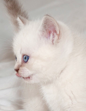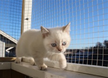 Michelle er yndig, hvit og vakker, men la deg ikke lure, hun er vår lille rampejente, hun er minst, men tøffest og uredd utrolig morsom og spretten. Hun var først til å klatre ut av innhegningen og gå til topps i klatretreet og hun danser med støvsugeren. Michelle er også den som har ramponert lekehuset og som vinner lekeslossingen.